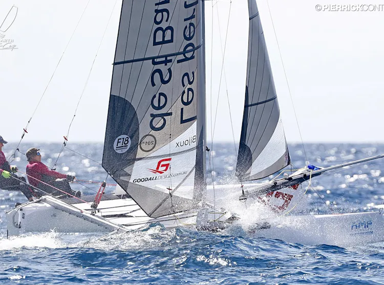 Depuis, il n’a de cesse d’être amélioré, évoluant chaque année, afin de rester au summum des performances. Les résultats sont au rendez-vous : Champion d’Europe F18 2016, vainqueur de la Saint Barth Cata cup 2015 et 2016 – champion du monde des Raids F18 2020. Ce fut un des premiers F18 à adopter la deck Sweeper. Son gréement est une référence. Le trampoling aero double couche est d’origine. L’accastillage est de première qualité – entièrement Harken, sa disposition unique avec un cunningam 16 brins partiellement sous le trampoling permet un plan de pont dégagé.